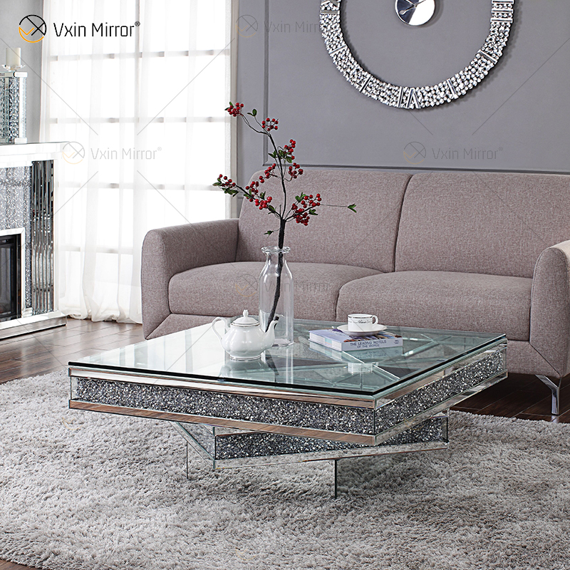 Вы здесь: Дом » Товары » Зеркальная мебель » Кофейный столик » Vxin WXF-158 3D сверкающий дробленый алмазный квадратный зеркальный журнальный столик Серебряный стол из закаленного стекла